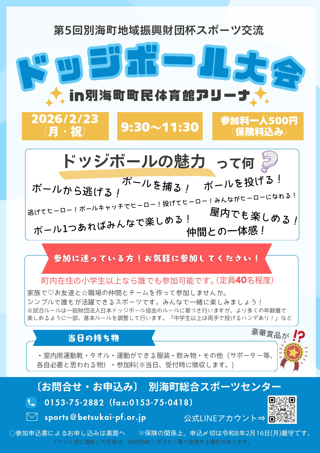 『第5回別海町地域振興財団杯スポーツ交流ドッジボール大会』開催のご案内です。